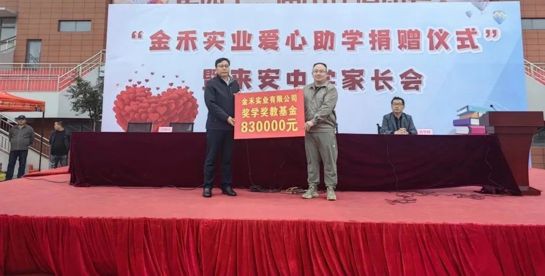 金秋十月,硕果飘香,正是收获与希望的美好时节。10月19日,金禾实业爱心助学捐赠仪式在来安中学举行。公司通过县红十字会向来安中学捐赠83万元,用于奖学奖教。初心不改,助学不怠,本次捐赠是继2022年、2023年向来安中学累计捐赠164万元之后,连续第三年捐赠。