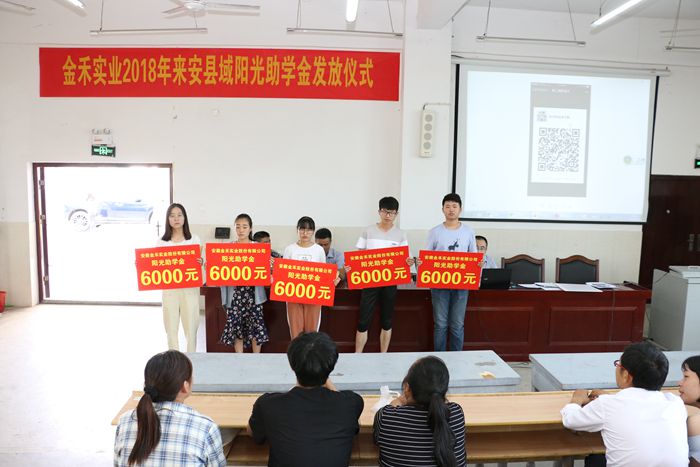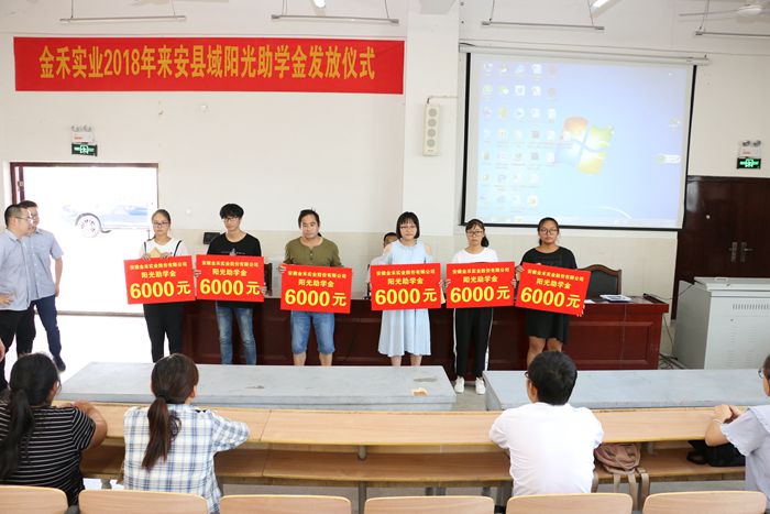 金禾实业举行2018年来安县域阳光助学金集中发放仪式