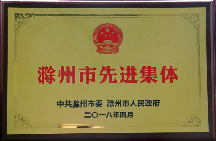 股份公司荣获2018年”滁州市先进集体“荣誉称号