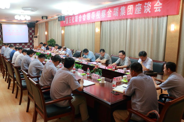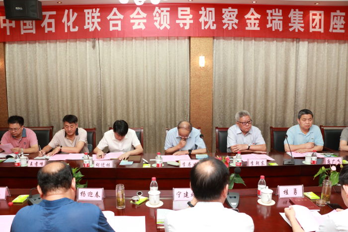 在李寿生会长讲话前,股份公司总经理夏家信代表公司,向考察组一行汇报了金瑞集团公司发展历程、企业概况、2016年及2017年1-6月份生产经营情况及下一步打算。董事长杨迎春结合具有公司自身特色的循环经济发展模式和企业产业结构调整、转型升级发展情况作了阐述。中国石油和化学工业联合会副秘书长兼科技部主任胡迁林、副秘书长兼国际部主任庞广廉,就科技成果鉴定、科技创新奖励、研发平台认定、申报国家级研发中心及国际组织合作等作了发言。