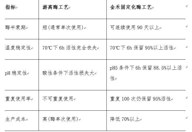 工艺优势对比:与传统游离酶工艺相比,金禾实业的固定化酶技术具有多重优势: