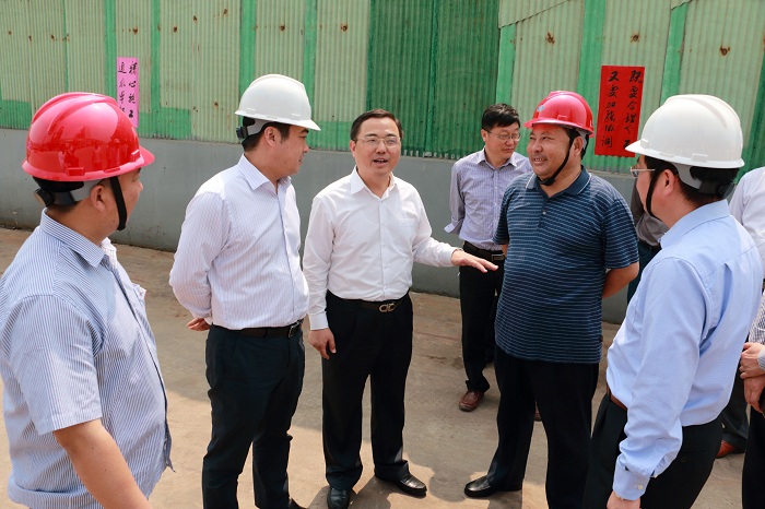5月25日上午,县委书记杨甫祥,在县委常委、常务副县长金同碧、副县长余爱军及县委办、发改委、经信委、国土局和规建局等部门负责人陪同下,来公司调研企业生产、经营情况。公司董事长杨迎春、总经理夏家信、监事会主席刘瑞元等领导陪同调研。