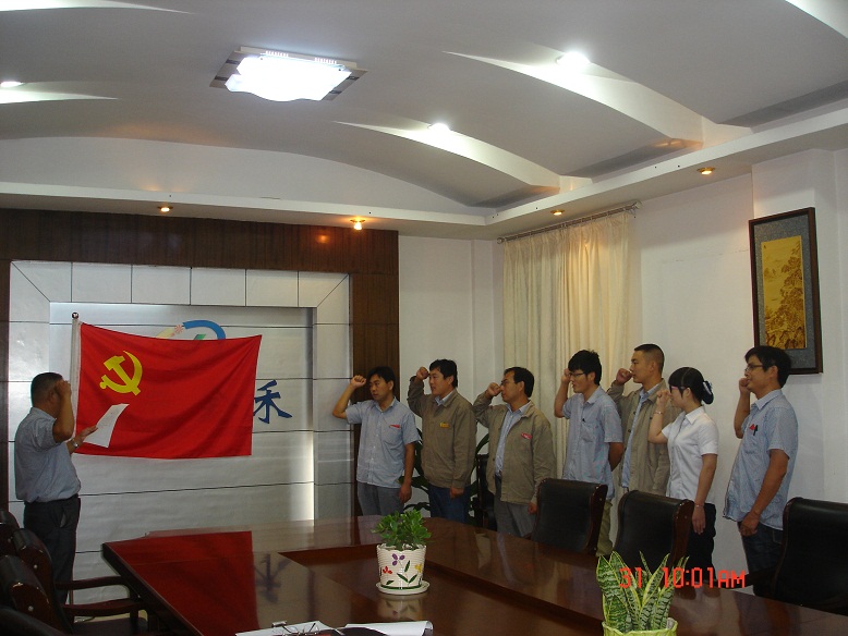 在周世国同志带领大家学习了党的性质、党的纲领、党的最高理想和最终目标及党员的权利义务等新党章中的有关章节后,转正的八名党员面向鲜红的党旗进行了入党宣誓:“我志愿加入中国共产党,拥护党的纲领,遵守党的章程,履行党的义务,执行党的决定,严守党的纪律,保守党的秘密,对党忠诚,积极工作,为共产主义奋斗终身,随时准备为党和人民牺牲一切,永不叛党”。