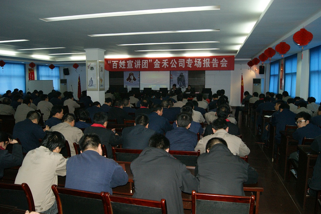 2014年3月29日下午,由县党群众路线教育实践办公室主办了“百姓宣讲团”金禾公司专场报告会。此次活动紧紧围绕着“党的群众路线教育实践活动”,学习宣传贯彻党的十八大,十八届三中全会精神,以“为民务实清廉”为主题,广泛宣讲各行各业党员干部保持清正廉洁,实干兴业,奉献创新,为民办事的感人故事。