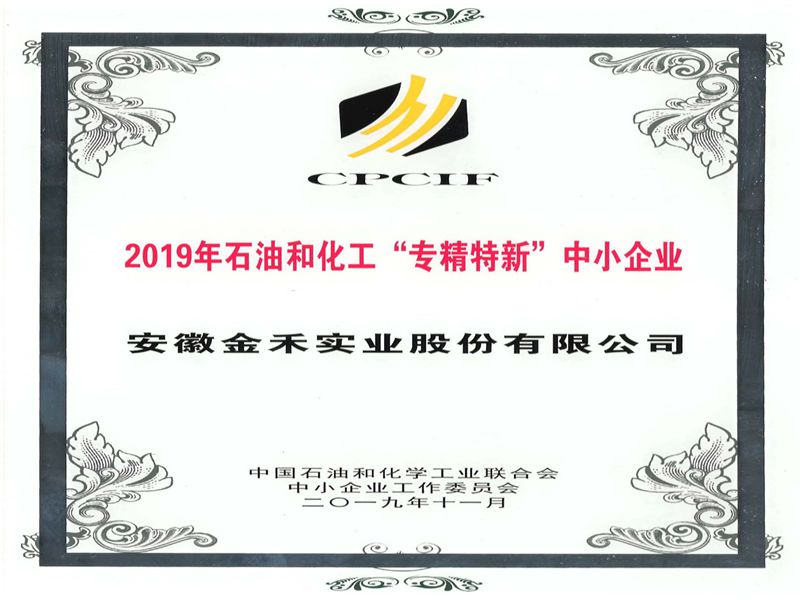同时经企业申报,中国石油和化学工业联合会专家组评审及公示,金禾实业获得2019年度石油和化工“专精特新”中小企业认定。