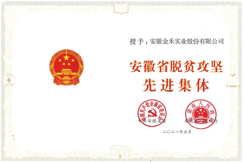 5月28日,在安徽省召开的脱贫攻坚总结表彰暨巩固拓展脱贫攻坚成果同乡村振兴有效衔接工作推进大会上,安徽金禾实业股份有限公司被授予“安徽省脱贫攻坚先进集体”称号,受到安徽省委、省政府表彰。