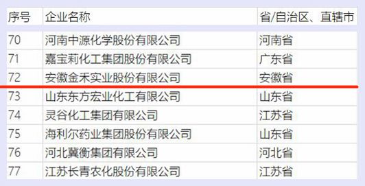 12月28日,中国石油和化学工业联合会发布了“2021石油和化工民营企业销售收入百强名单”,安徽金禾实业股份有限公司位列第72位。