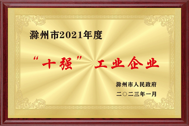 公司被表彰为“安徽省民营企业税收贡献50强”和滁州市“十强”工业企业