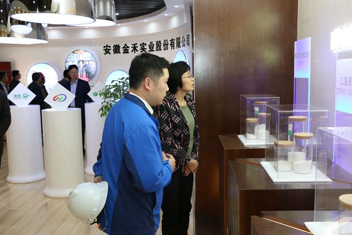 杨文萍一行在公司副董事长杨乐、党委书记戴世林等陪同下,先后深入五公司精烘包生产车间、中心控制室、产品检验中心、展示厅等,详细了解企业生产工艺流程、主要产品、科技创新、市场销售、发展历程以及安全生产、环保等情况。