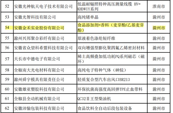 近日,安徽省经信厅公布了《2023年安徽省工业精品名单》,金禾实业食品添加剂-香料(麦芽酚/乙基麦芽酚)成功入选。此次评选是重点围绕“十四五”时期我省重点发展的十大新兴产业中的重点领域制造业产品,遴选一批品质卓越、技术领先、性能优良、用户赞誉、效益良好的“安徽工业精品”。