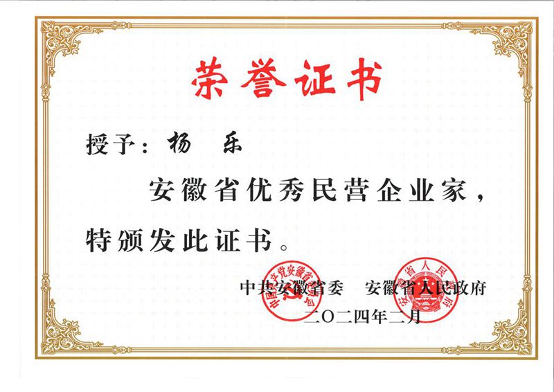 安徽省委、省政府表彰|董事长杨乐荣膺“安徽省优秀民营企业家”称号!