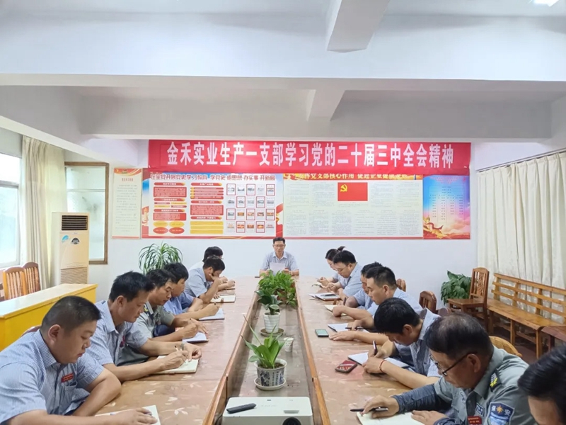 为进一步深入贯彻落实党的二十届三中全会精神,学习习近平总书记关于全面深化改革的一系列新思想、新观点、新论断,把党的全面领导贯彻到改革发展各方面、全过程,确保企业发展始终沿着正确的政治方向前进。7月21日金禾实业党委召开专题学习会后,各党支部积极响应,通过“三会一课”、主题党日等多种形式,组织广大干部职工认真学习、广泛讨论、深入交流全会精神,进一步凝聚思想共识、积蓄奋进力量。